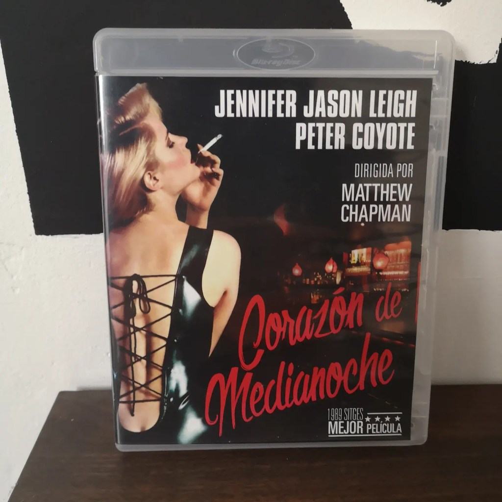 Looking at the still images in the article it reminded me of how different this film was and how it had totally taken me by surprise the first time that I saw it on VHS in the early 1990’s. I had gone into this movie totally blind having only bought the film because it starred Jennifer Jason Leigh in the lead and I had loved her powerful performance in the classic Rutger Hauer chiller ‘The Hitcher’ and ‘Heart of Midnight’ also advertised the great Peter Coyote in second billing. I knew these actors from great films such as ‘E.T, Bitter Moon and Fast Times at Ridgemont High’ so I was expecting a somewhat mainstream erotic thriller. But instead I found that what I was watching from director Mathew Chapman, was an exploration of childhood trauma wrapped up in a fever dream, that kept me guessing at every turn and had me glued to the screen wanting to know what happed next to these peculiar characters. The performances in this film are like nothing else I have ever seen, each charter is quirky, up to no good and looking to cut an angle and at the centre is Jennifer Jason Leigh who is lost in the ‘Heart of Midnight’. In brief, the film follows an emotionally disturbed young woman who inherits a night club from her uncle and decides to start a new life for herself running the club in the city far away from her old troubled life. But she soon discovers that all is not what it seems within the hidden passageways and hallways of the nightclub and that the walls hold as many secrets and her own repressed memories. Hopefully that is enough to wet your apatite as I don’t say any more to spoil the strange twists and turns that make this movie so great. I will say for modern audiences ,that the movie is low budget so don’t expect the best production values, it has the look of a late night TV thriller which for me is a genre I really enjoy but it may seem a little dated by todays standards. But the twisted story and great performances more than make up for its lack of production value. There are a few surprises too with actors such as Steve Bucemi and James Reborn popping up as sinister characters in smaller roles. Its fair to say that The Boneyard most certainly recommends this dark, disturbing and quirky thriller. Its best to go into it not knowing what to expect as it holds some great unexpected moments of strangeness and terror. Its a hidden gem thriller that showcases the outstanding charter work and talent of a young Jennifer Jason Leigh, she elevates this erotic thriller and gives it an extra bite that makes this an unforgettable experience. The film is available on DVD for quite cheap from the M.I.A (Missing in Action) label and there was also a short Blu Ray release from Kino which is now pretty expensive, but there was also a decent looking BD-R from the Spanish label Cinema Media International which is around the £20 mark which is pictured below.